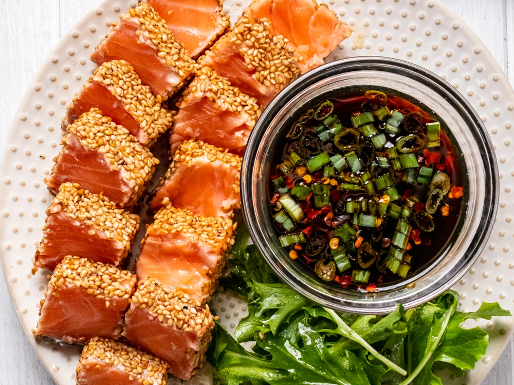 Рецепт татаки из лосося быстр и легок. Помимо того, что он здоровый, этот блюдо обладает палитрой заманчивых цветов и взрывом ароматов. Татаки из лосося - особенное японское блюдо.